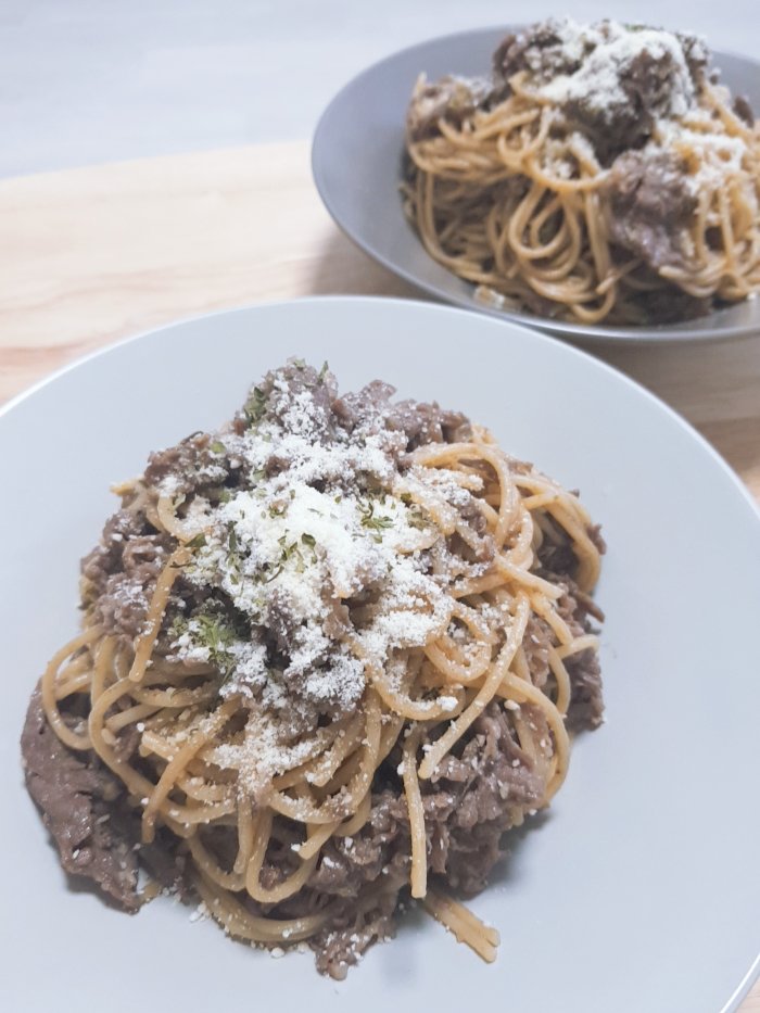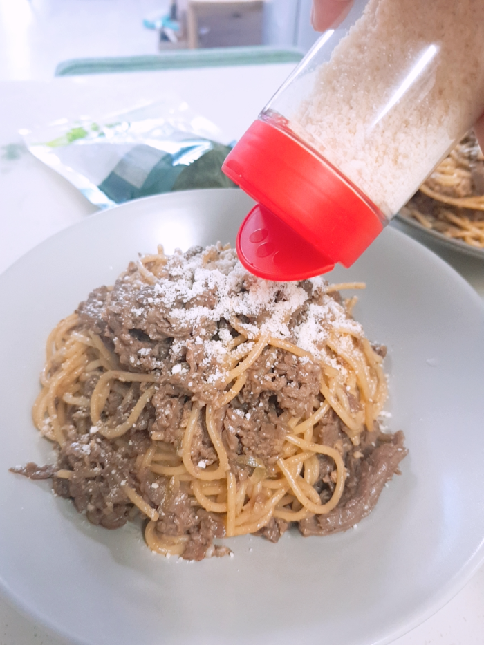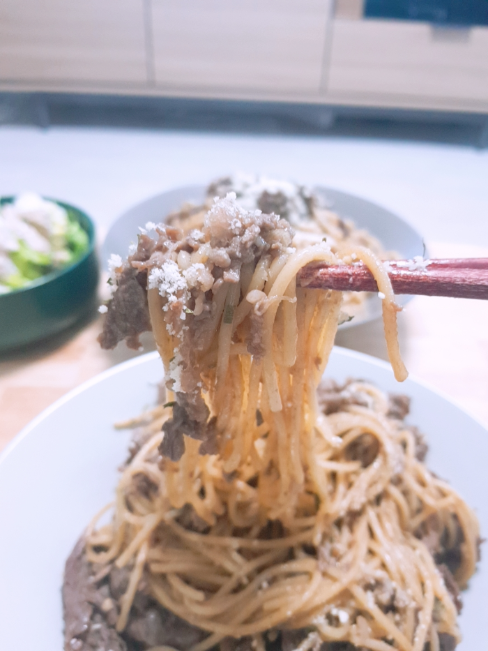 물론, TV 레시피 소개에서 봤던 그 모든 재료와 손맛은 우리집엔 없다. 그냥 내 맘대로 더 쉽게 만들려다 보니 이미 양념이 되어 있는 불고기에 파스타 면만 넣는 꼴이지만 그럼에도 마지막 데코에 신경썼더니 오빠도 나도 나름 만족하는 한끼 식사가 되었다.