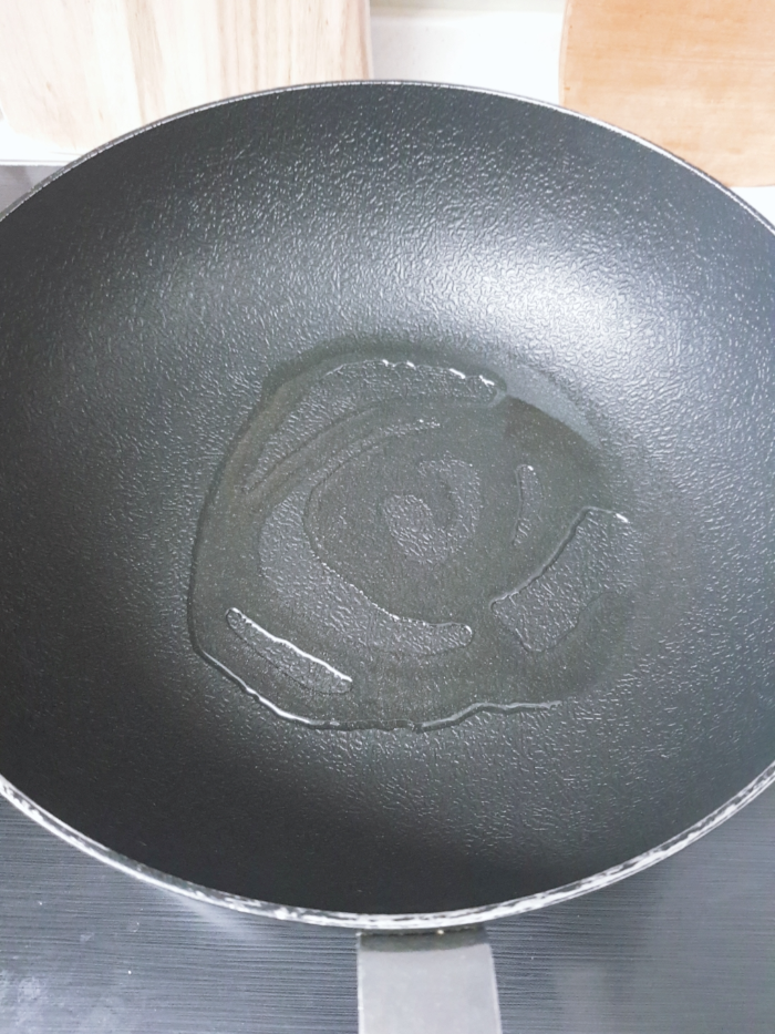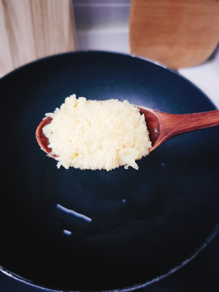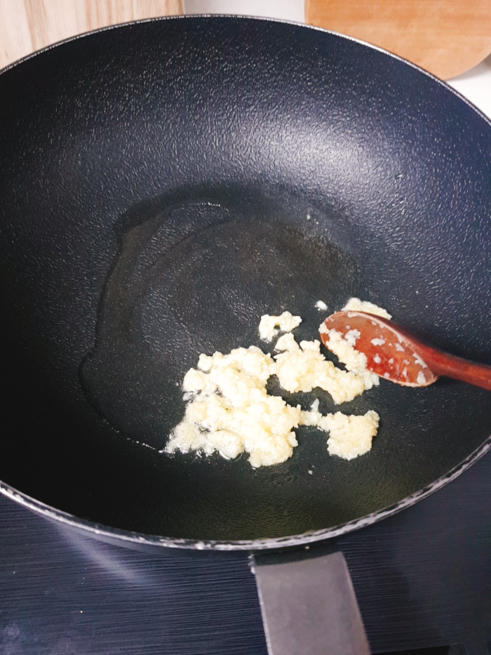 2. 다른 팬에 기름을 두르고 다진마늘과 다진파를 한 숟갈씩 넣어 기름을 낸다. 원래는 베트남고추던가..?를 넣고 매콤한 맛을 내야 하지만 재료가 없어서 마늘이랑 파를 한 껏 넣었다.