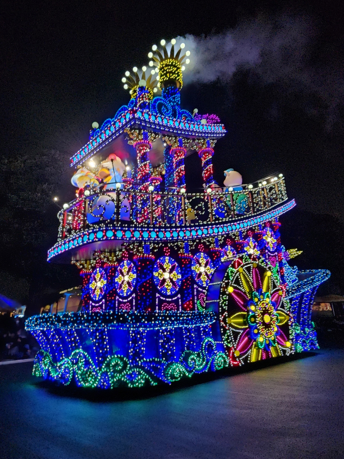 화려하다 화려해. 저 전구가 몇개라고 멘트가 나왔던 것 같은데 잘 기억은 안난다. 아무튼 엄청 화려하고 반짝이고 연말에 진짜 딱 잘어울리는 디즈니의 저녁 퍼레이드다.