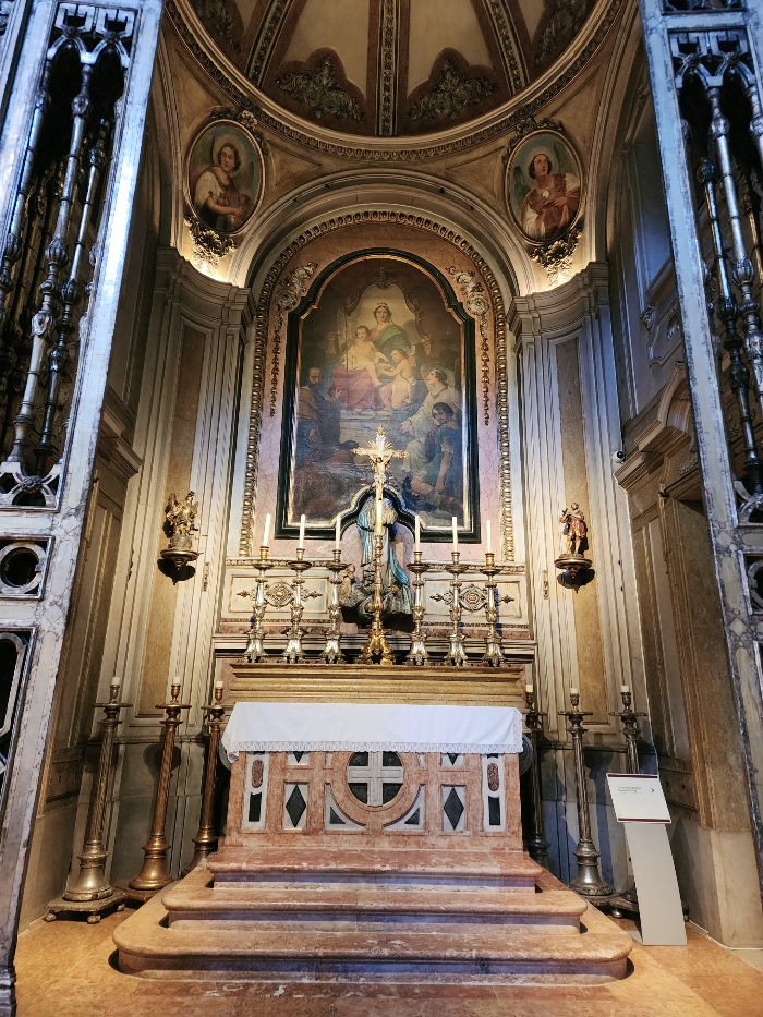 어제의 상 도밍고 성당처럼 겉 모습과 달리 내부는 반전이다. 아직 아침 시간이어서 그런지 사람이 더 없고 조용 조용해서 경건함을 한 껏 느끼기에 더 없이 좋았다. 이곳은 특히 천장이 매우 화려한 성당이었는데 천장화 양 옆으로 들어오는 햇살이 정말 예쁘고 멋있었다.
