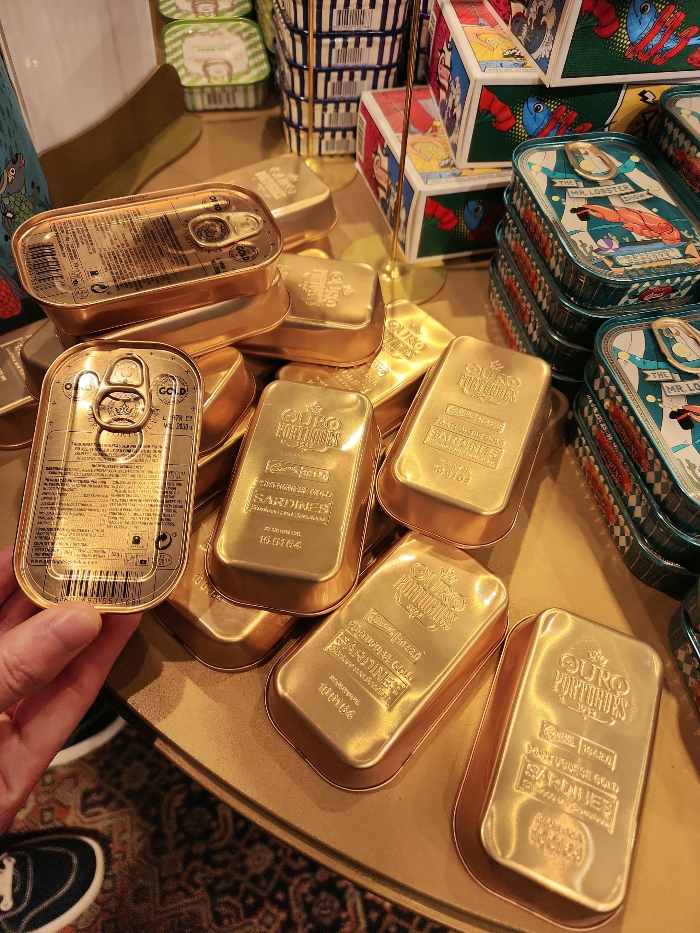 가게 중앙에 계단이 있어서 밑으로 내려가보면 더더더 많은 통조림이 진열되어 있고, 그 중에 가장 시선이 꽂혔던 건 금괴 모양의 통조림. 아ㅡ 이건 좀 살까말까 고민했으나 일단 지금은 짐을 늘리면 하루종일 들고 다녀야 하므로 꾹 참았다.