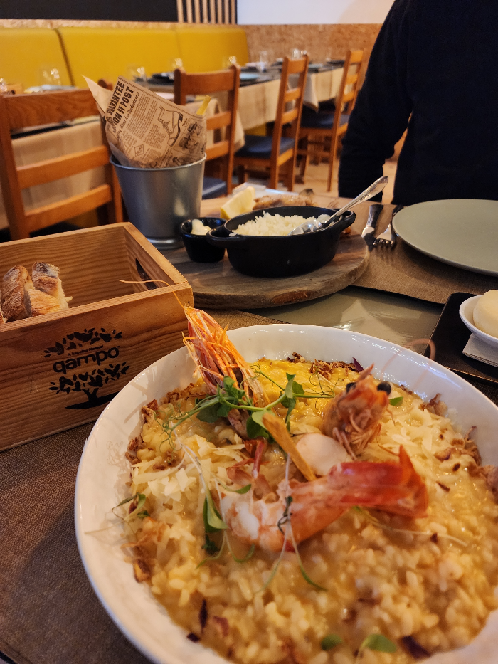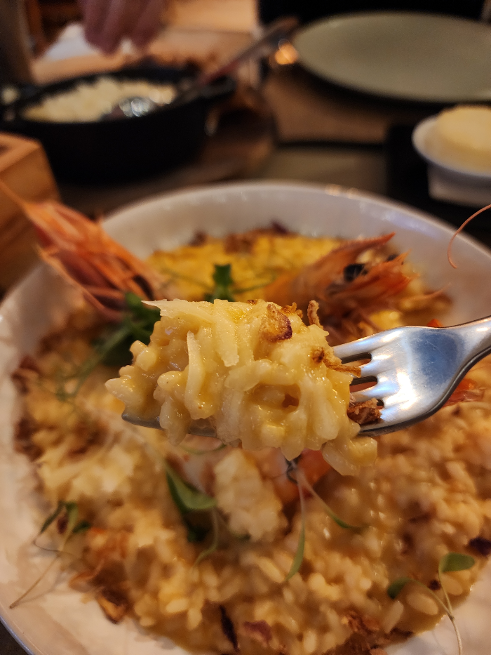 이어서 나온 새우리조또와 돼지고기 요리. 돼지고기 요리는 신트라 데이투어에서 먹어본 게 맛있어서 또 한 번 골라봤는데 여기서도 역시 맛있었고ㅡ 새우리조또는 정말이지 부드럽고, 고소하고 달달하면서 풍미가 진짜 끝내주는 맛.